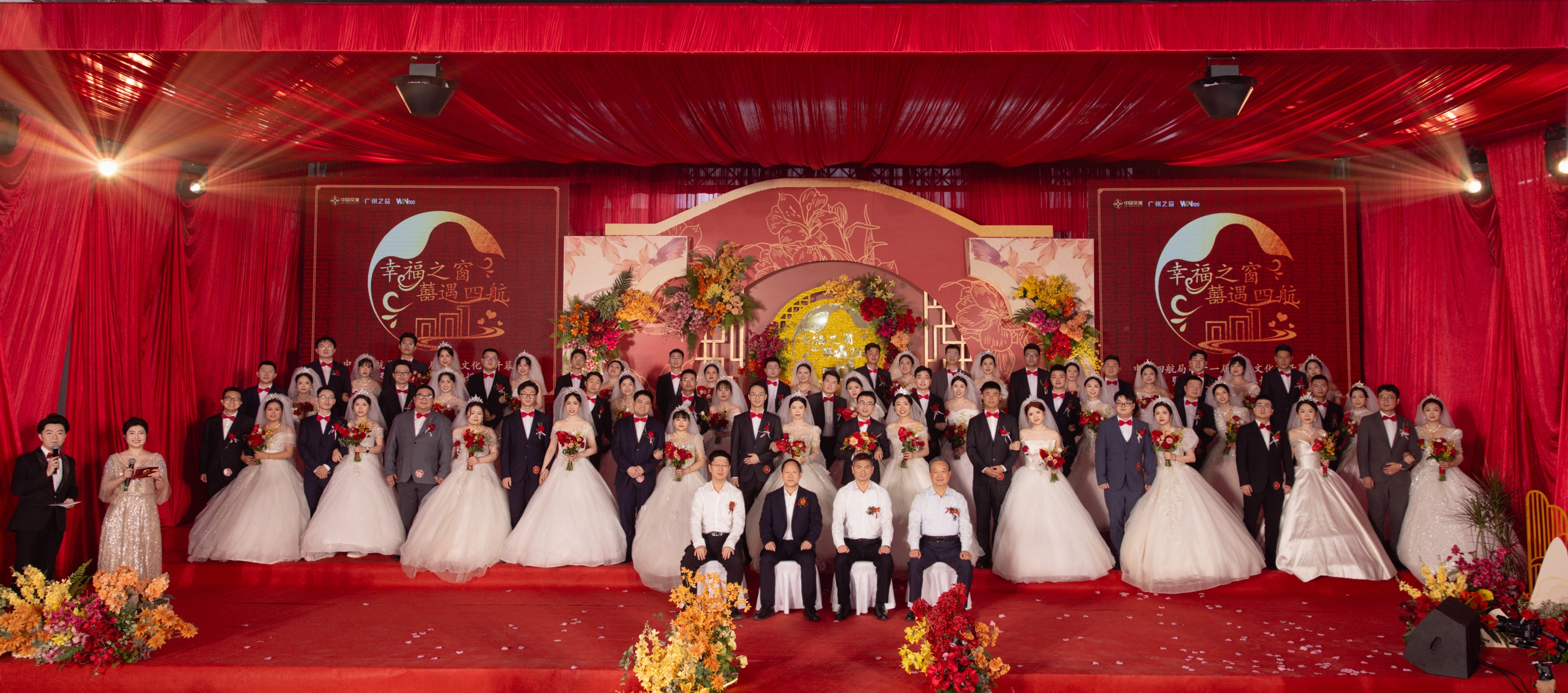 5月25日,四航局第十一屆企業(yè)文化節(jié)開幕式暨第九屆青年集體婚禮在廣州之窗藝術中心隆重舉行。四航局黨委書記、董事長李惠明,黨委副書記、工會主席曾瑞雄,廣東省海員工會主席章正軍,在粵央企團工委書記孫誠博出席婚禮,并與32對新人合影留念。