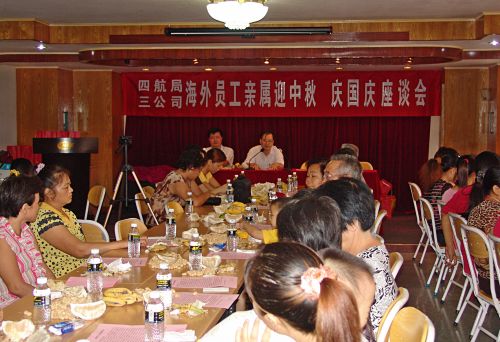 一公司、二公司、三公司在國慶前后舉辦海外項目職工家屬座談會,送上慰問品和慰問金,為海外項目職工家屬排憂解難,并通過手機對有通訊條件的海外施工職工發(fā)送慰問短訊。三公司讓每位員工家屬在攝像機前給海外親人說幾句祝賀語,將座談會攝像制成光碟,寄往海外。