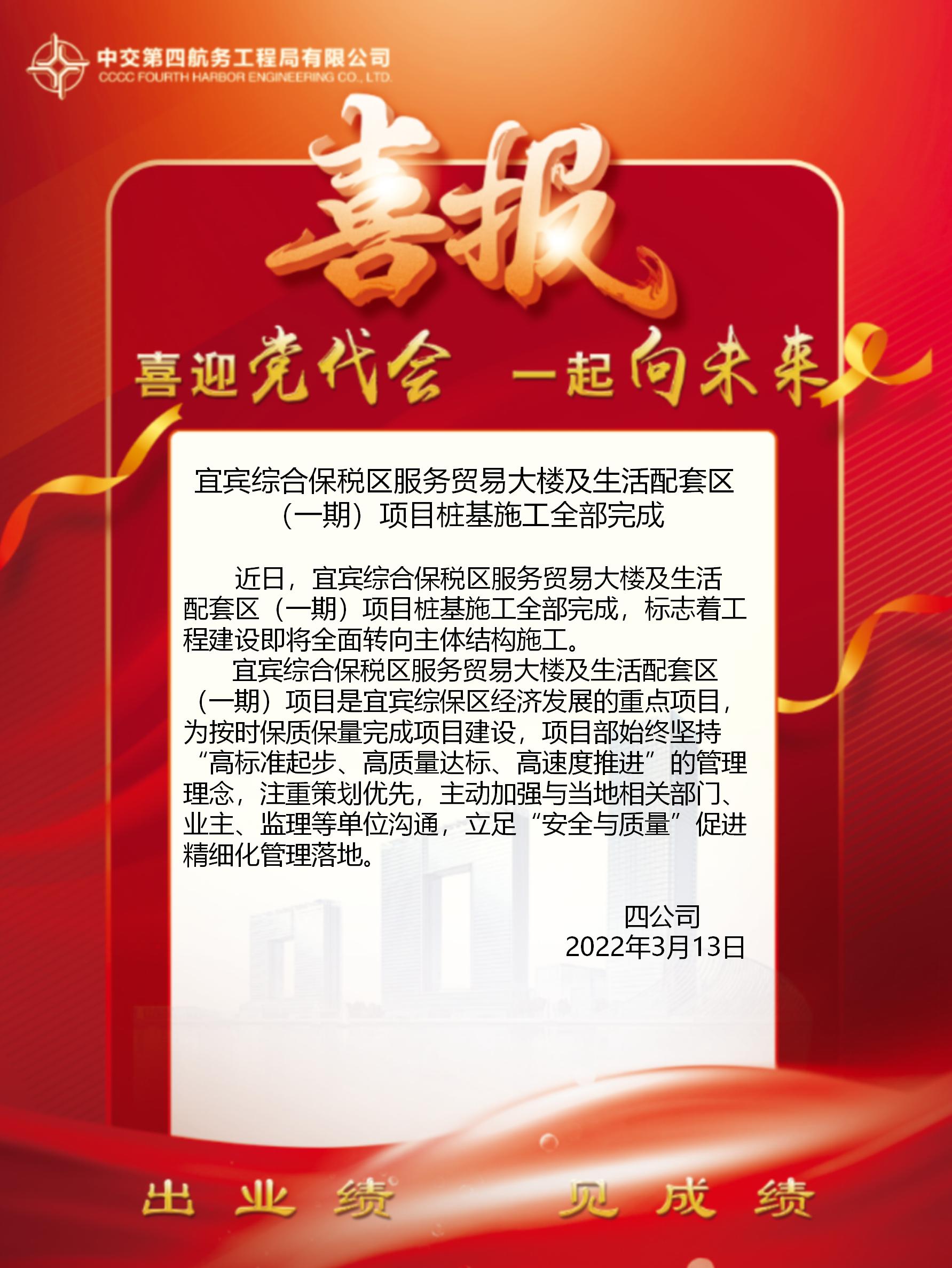 宜賓綜合保稅區(qū)服務(wù)貿(mào)易大樓及生活配套區(qū)(一期)項(xiàng)目樁基施工全部完成