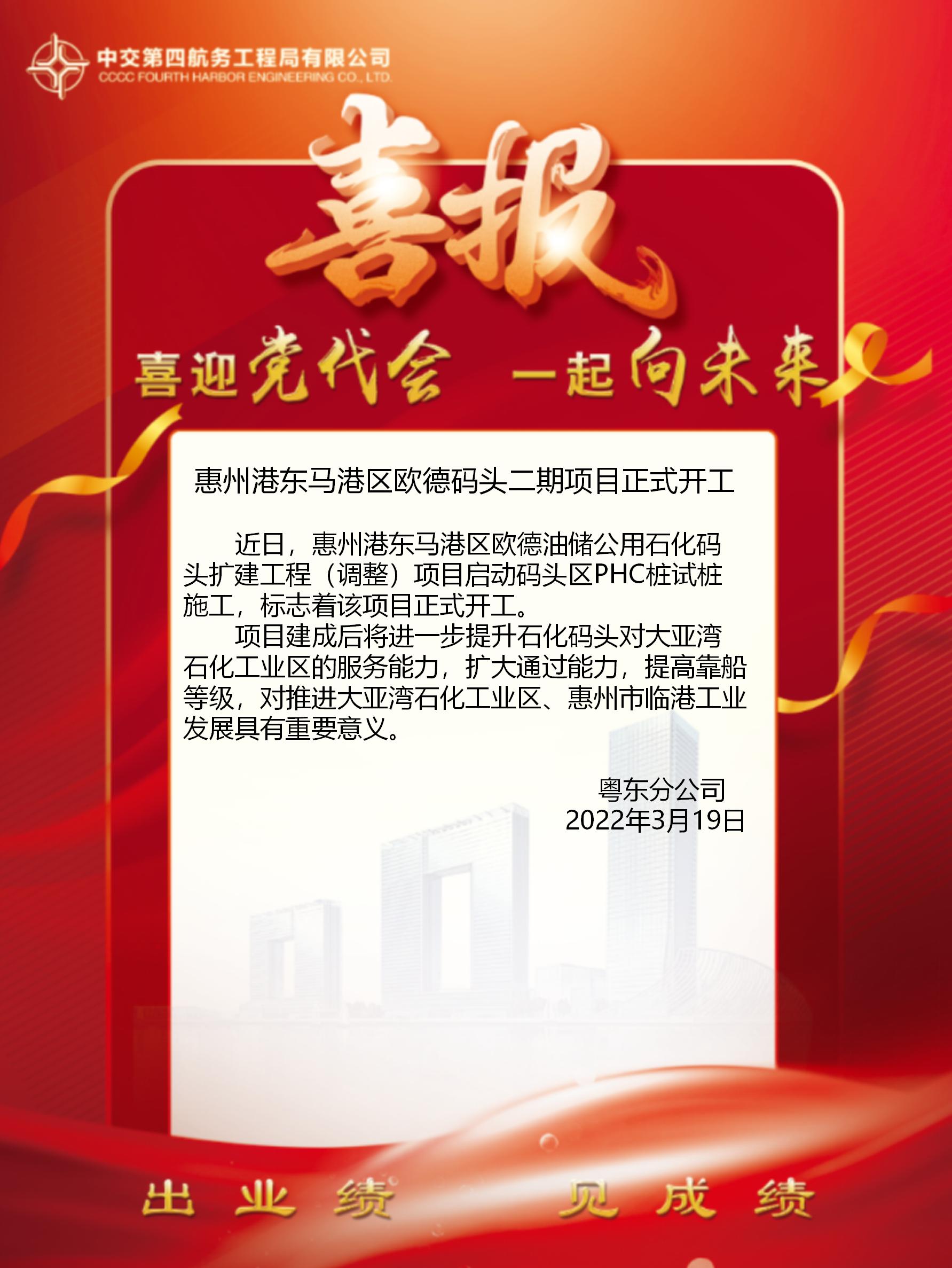 惠州港東馬港區(qū)歐德碼頭二期項目正式開工
