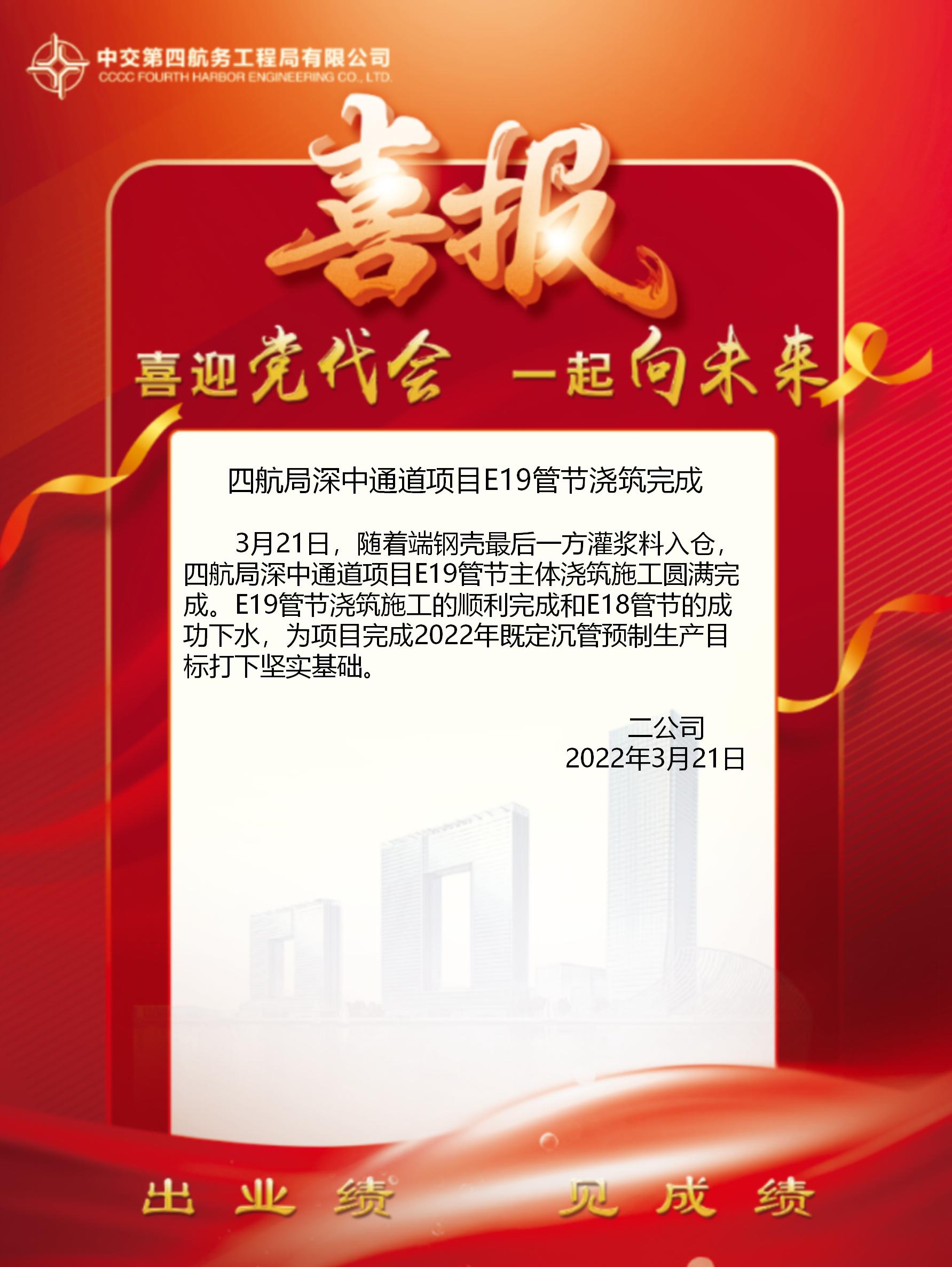 四航局深中通道項(xiàng)目E19管節(jié)澆筑完成