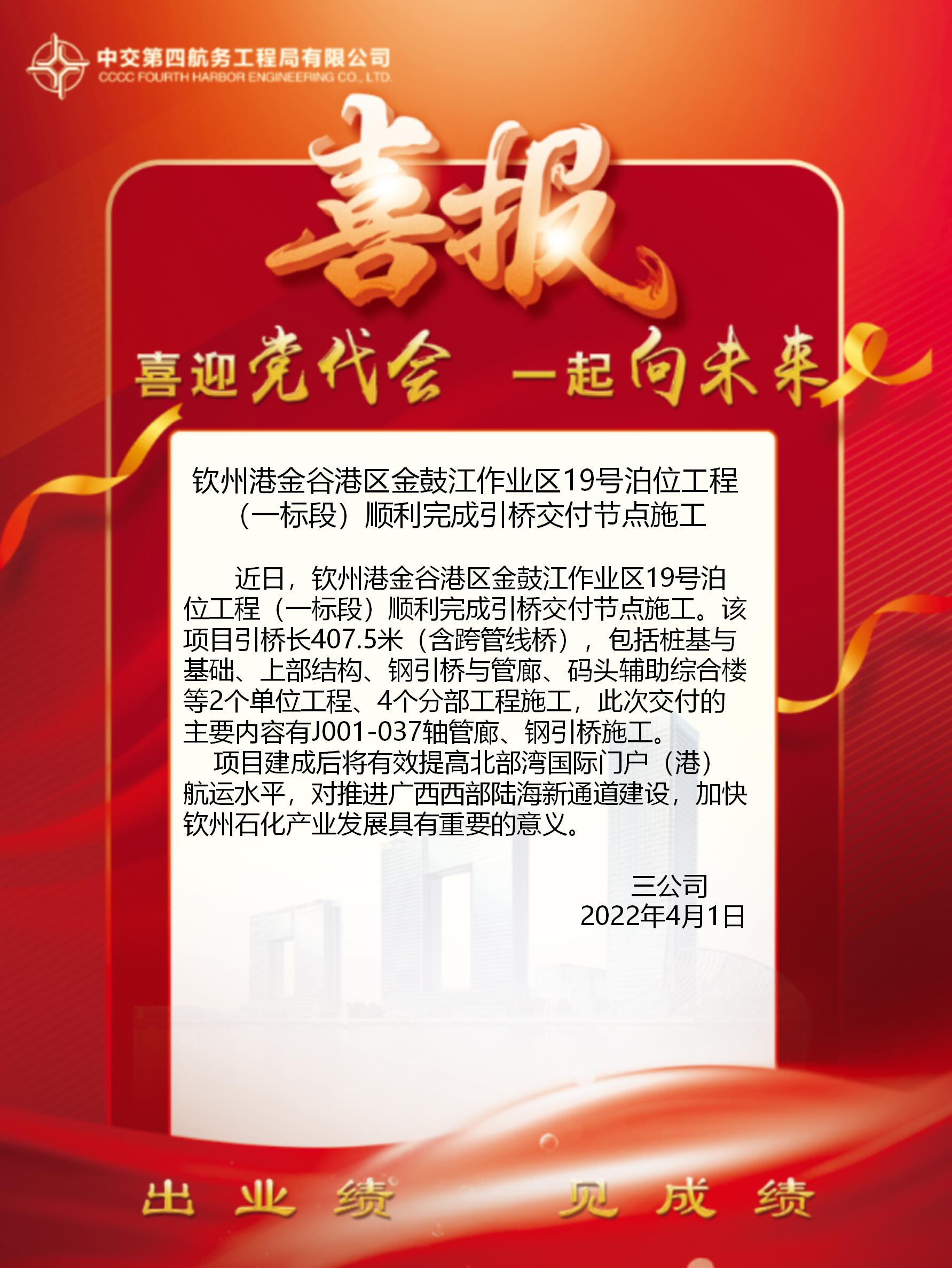 欽州港金谷港區(qū)金鼓江作業(yè)區(qū)19號(hào)泊位工程(一標(biāo)段)順利完成引橋交付節(jié)點(diǎn)施工