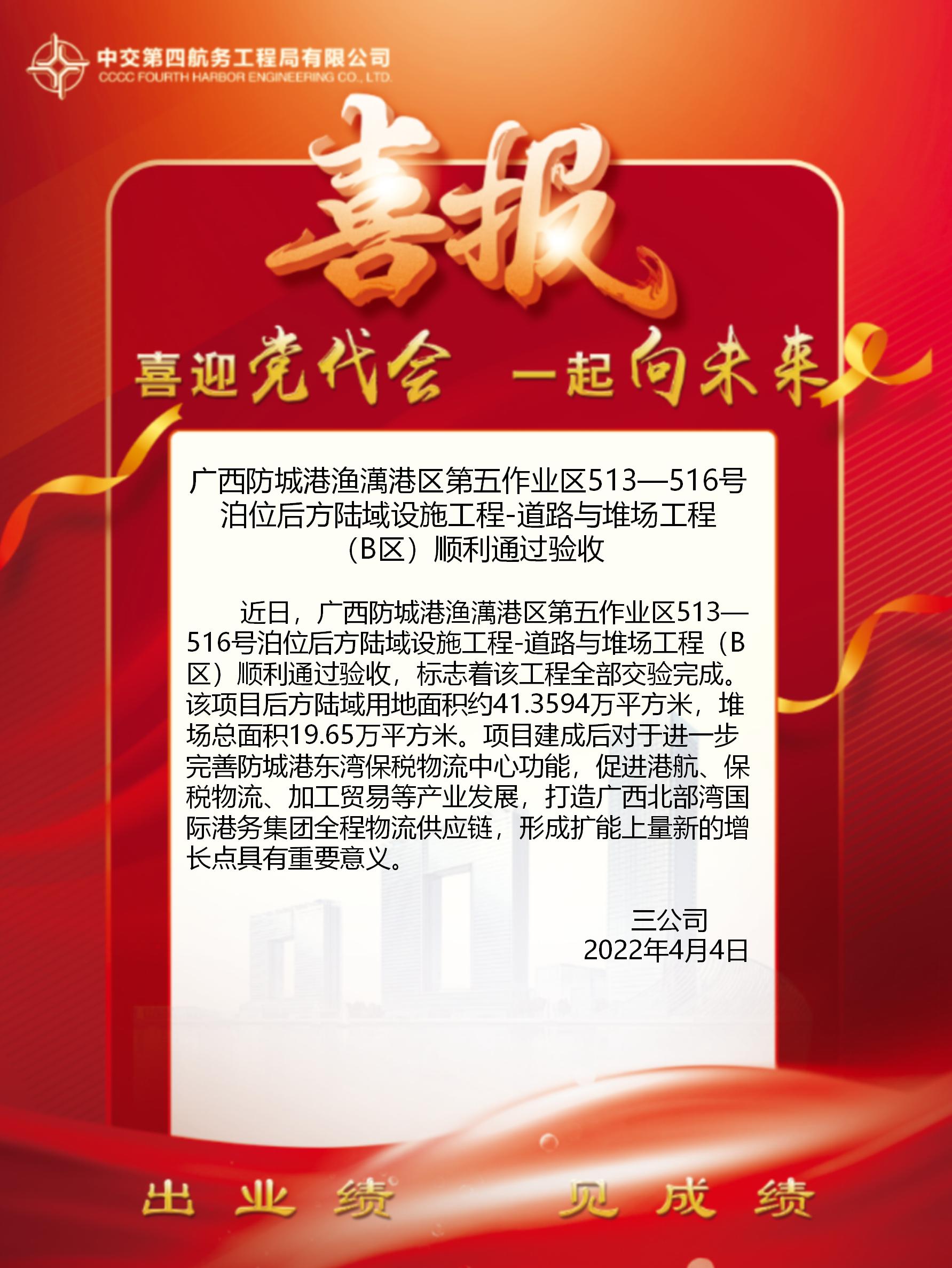 廣西防城港漁澫港區(qū)第五作業(yè)區(qū)513—516號(hào)泊位后方陸域設(shè)施工程-道路與堆場(chǎng)工程(B區(qū))順利通過(guò)驗(yàn)收