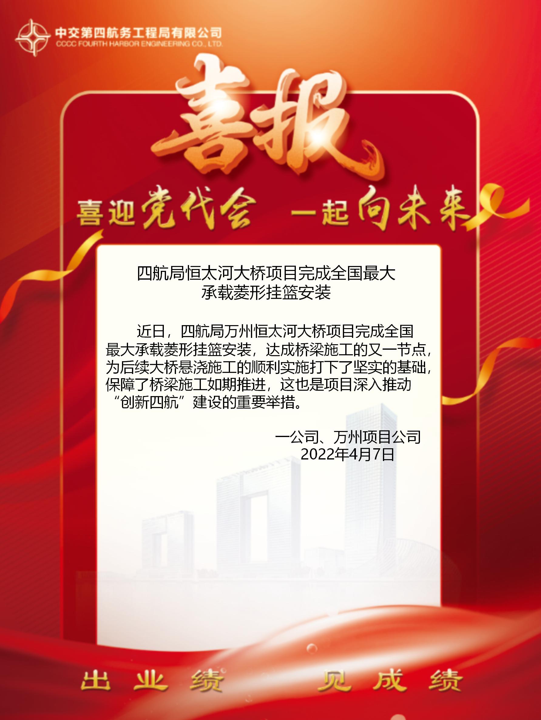 四航局恒太河大橋項(xiàng)目完成全國(guó)最大承載菱形掛籃安裝