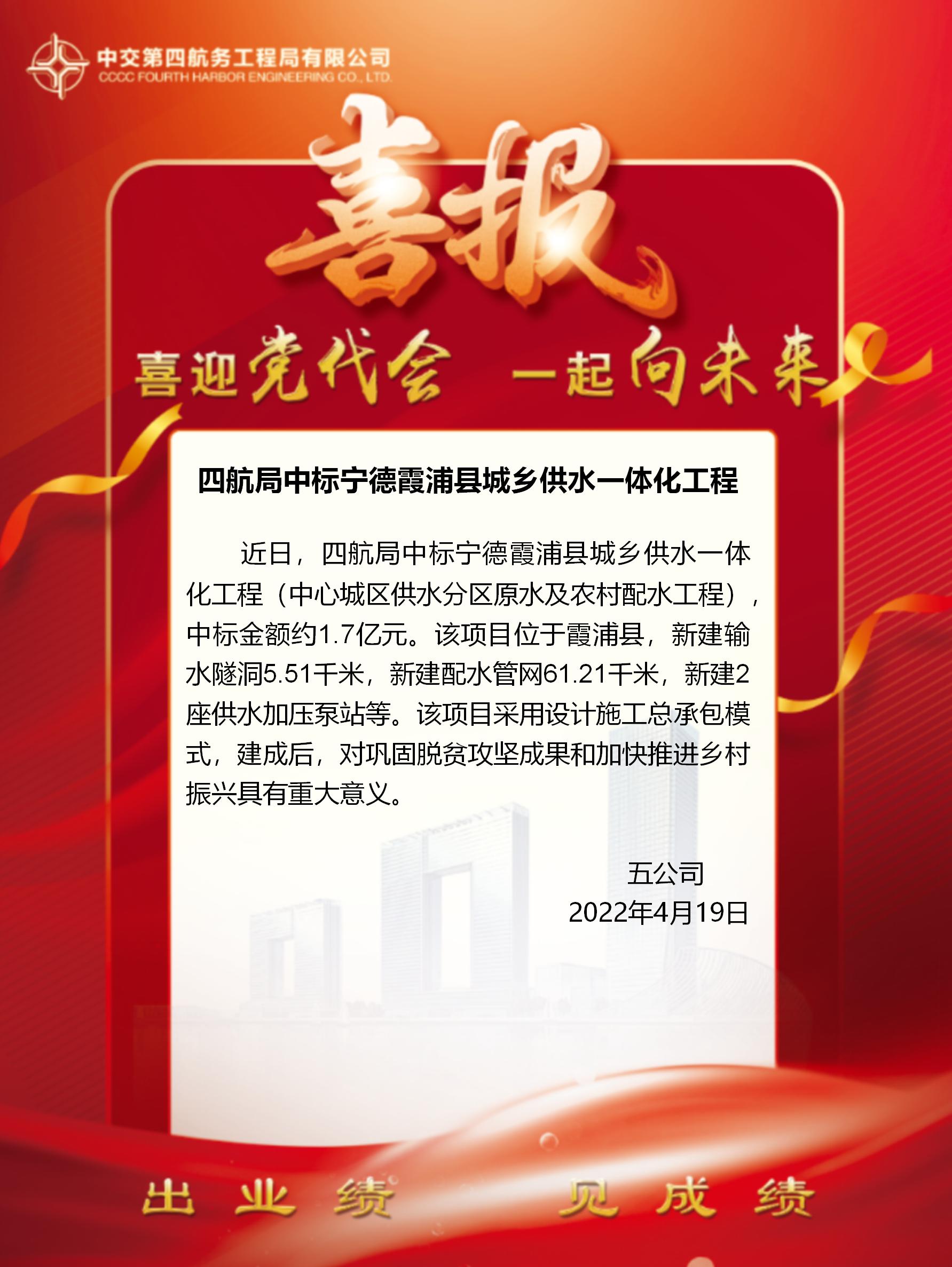 四航局中標(biāo)寧德霞浦縣城鄉(xiāng)供水一體化工程
