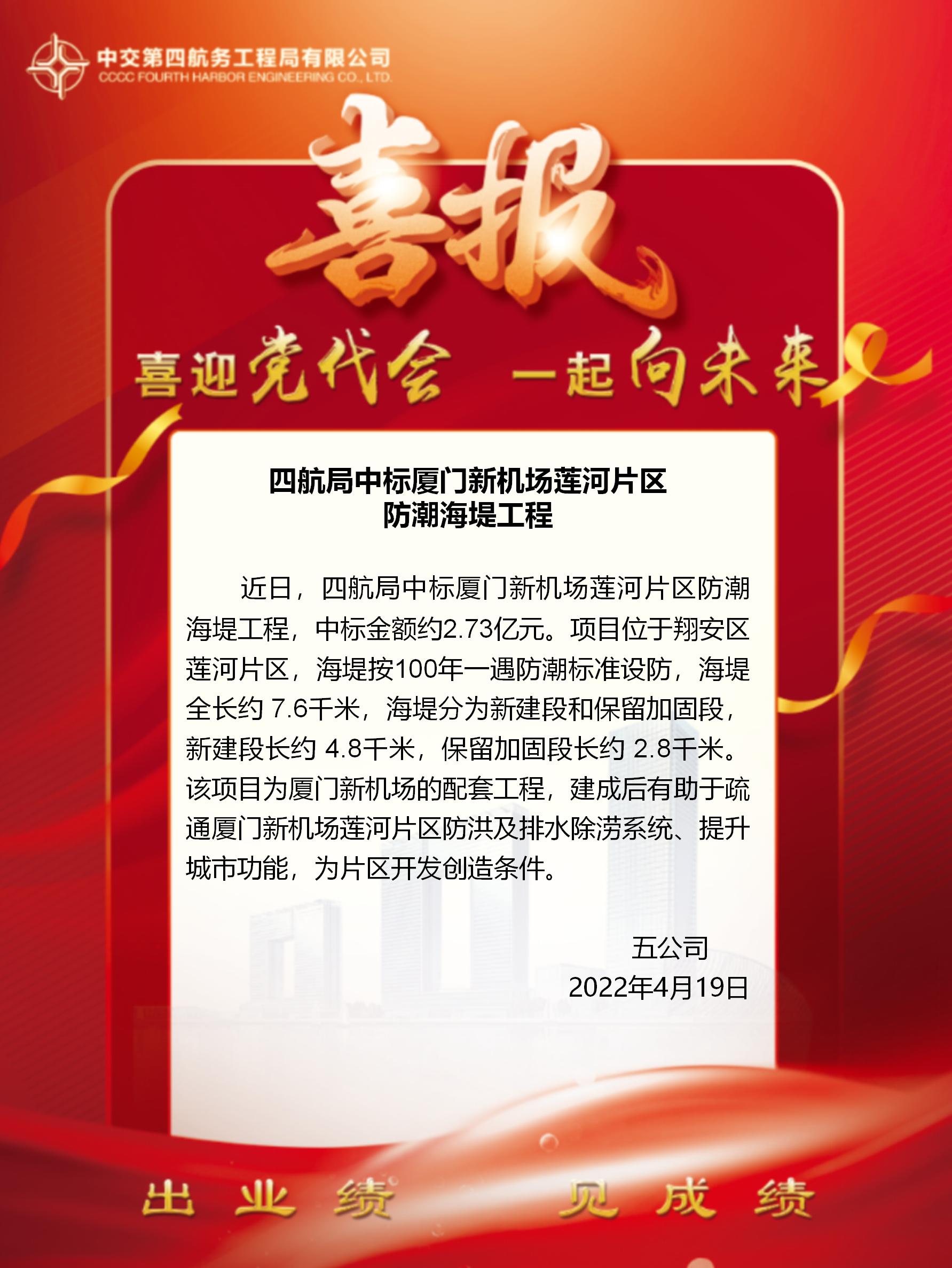 四航局中標(biāo)廈門新機場蓮河片區(qū)防潮海堤工程