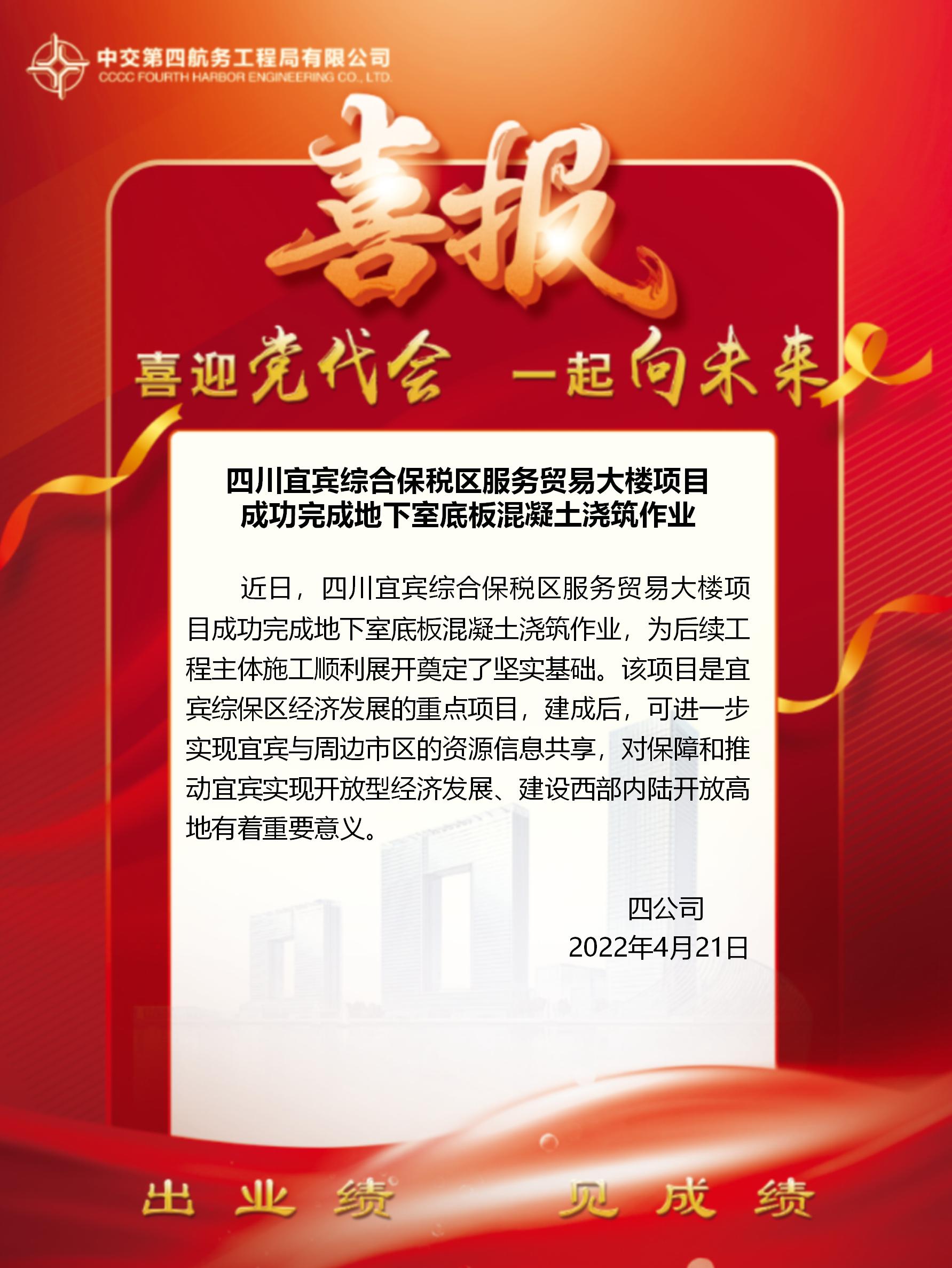 四川宜賓綜合保稅區(qū)服務(wù)貿(mào)易大樓項(xiàng)目成功完成地下室底板混凝土澆筑作業(yè)