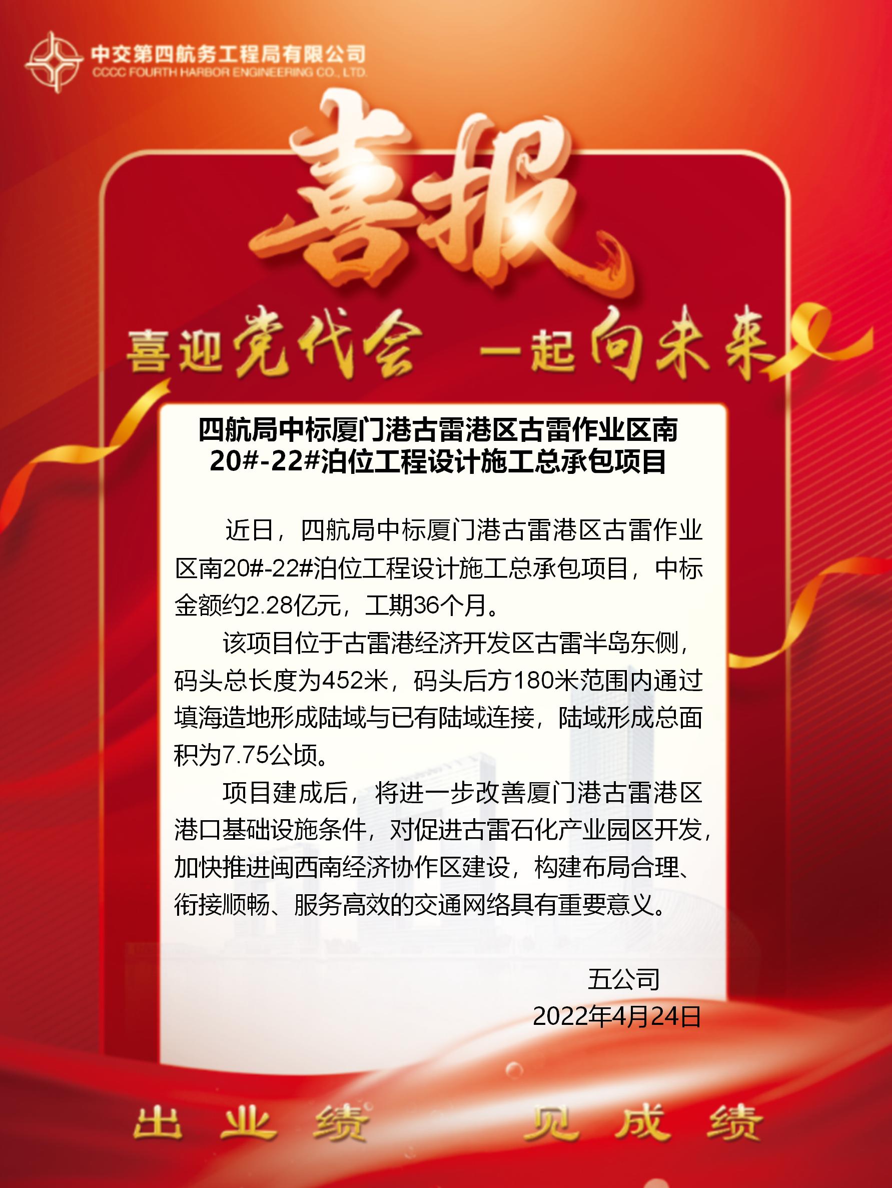 四航局中標(biāo)廈門(mén)港古雷港區(qū)古雷作業(yè)區(qū)南20#-22#泊位工程設(shè)計(jì)施工總承包項(xiàng)目