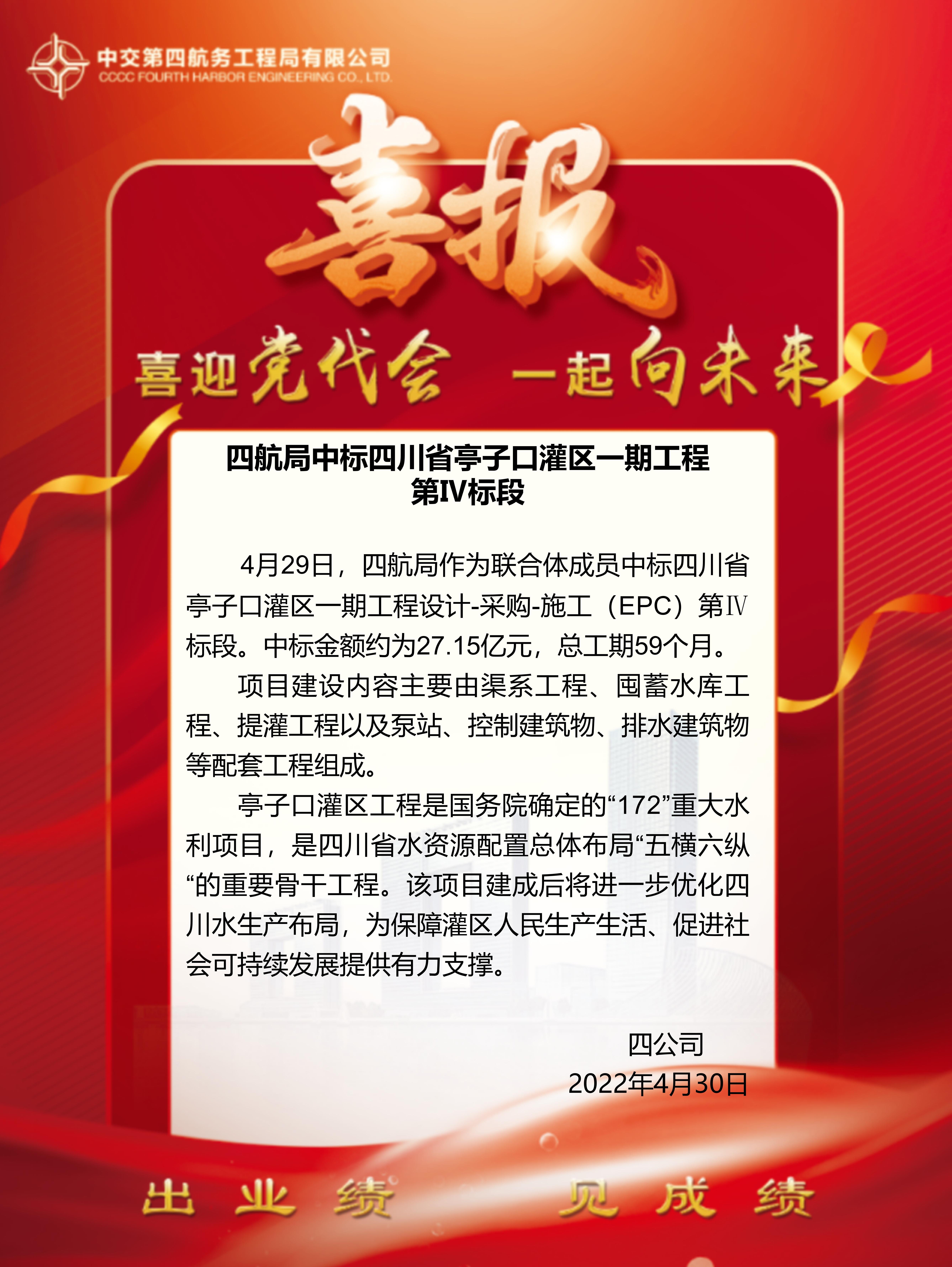四航局中標(biāo)四川省亭子口灌區(qū)一期工程第Ⅳ標(biāo)段