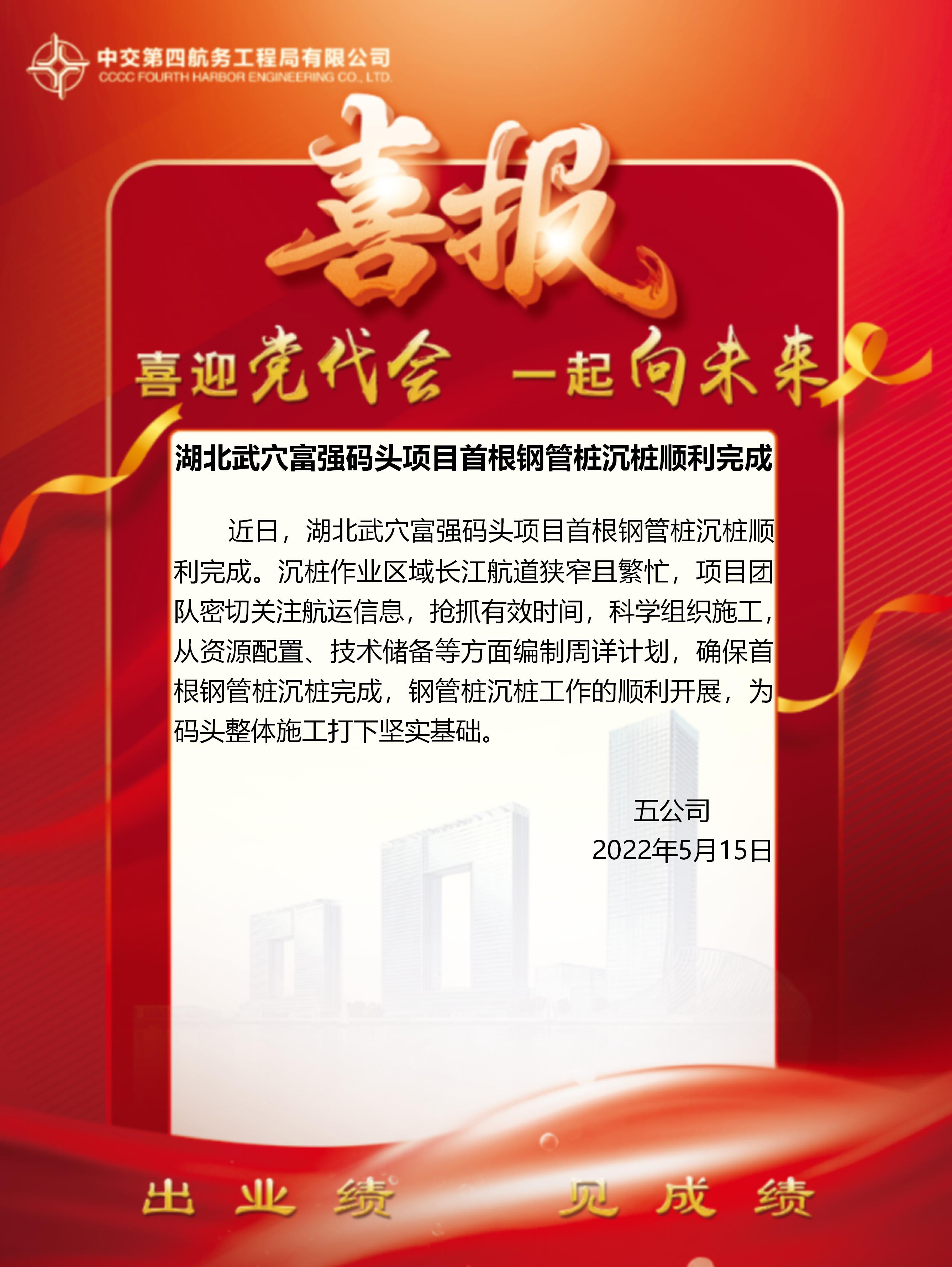 湖北武穴富強碼頭項目首根鋼管樁沉樁順利完成
