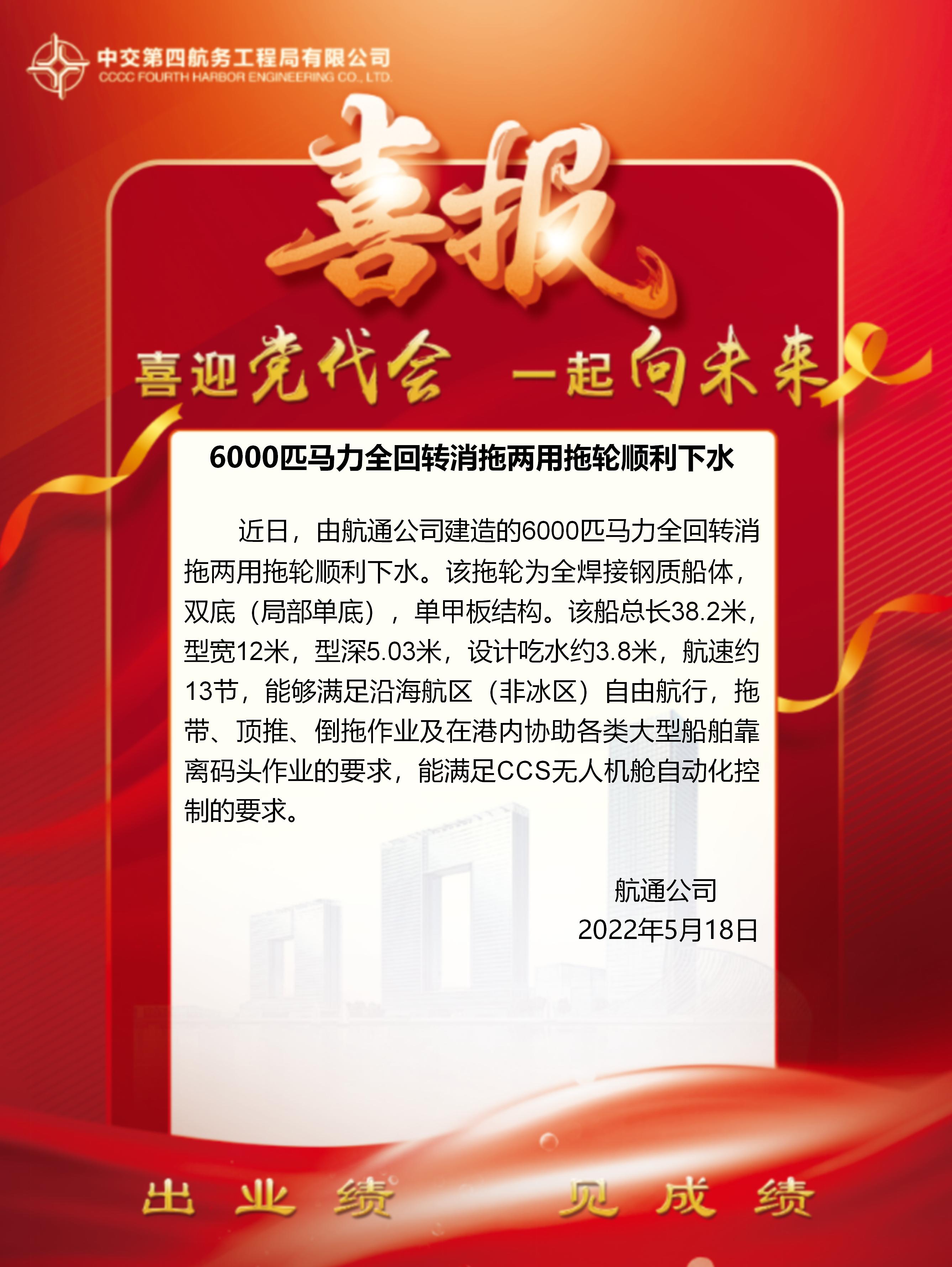 6000匹馬力全回轉消拖兩用拖輪順利下水