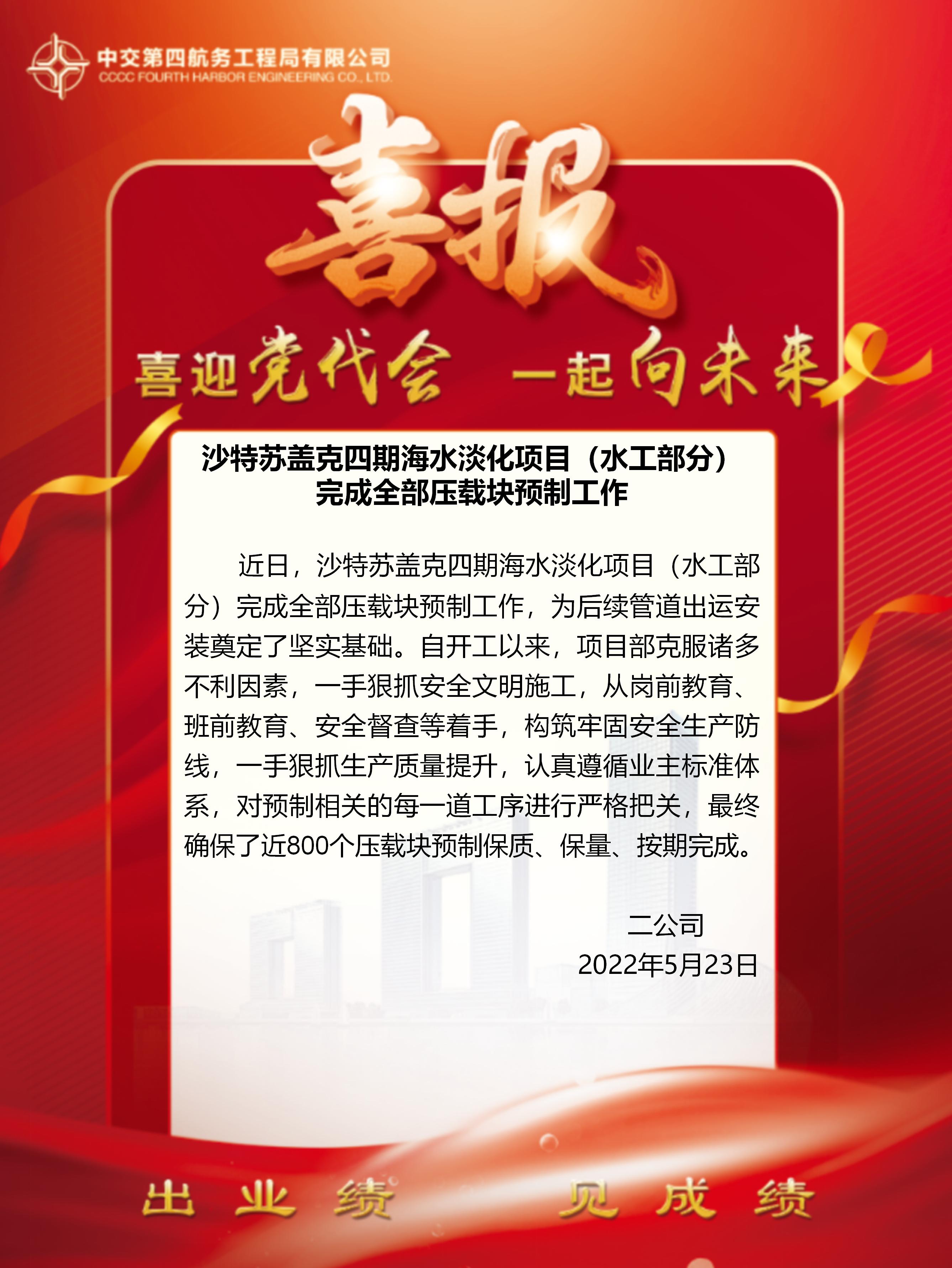 沙特蘇蓋克四期海水淡化項目(水工部分)完成全部壓載塊預(yù)制工作