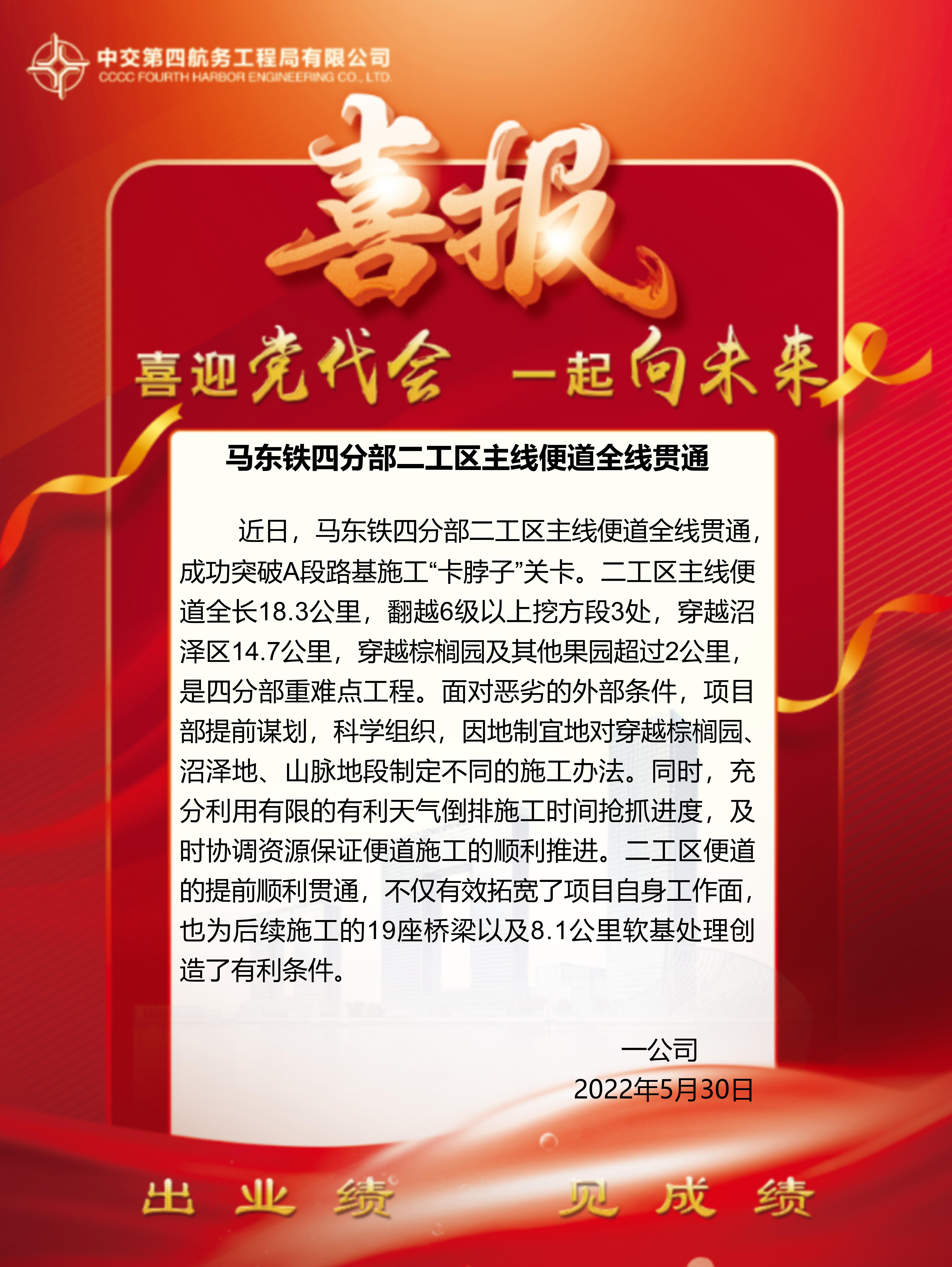 馬東鐵四分部二工區(qū)主線便道全線貫通