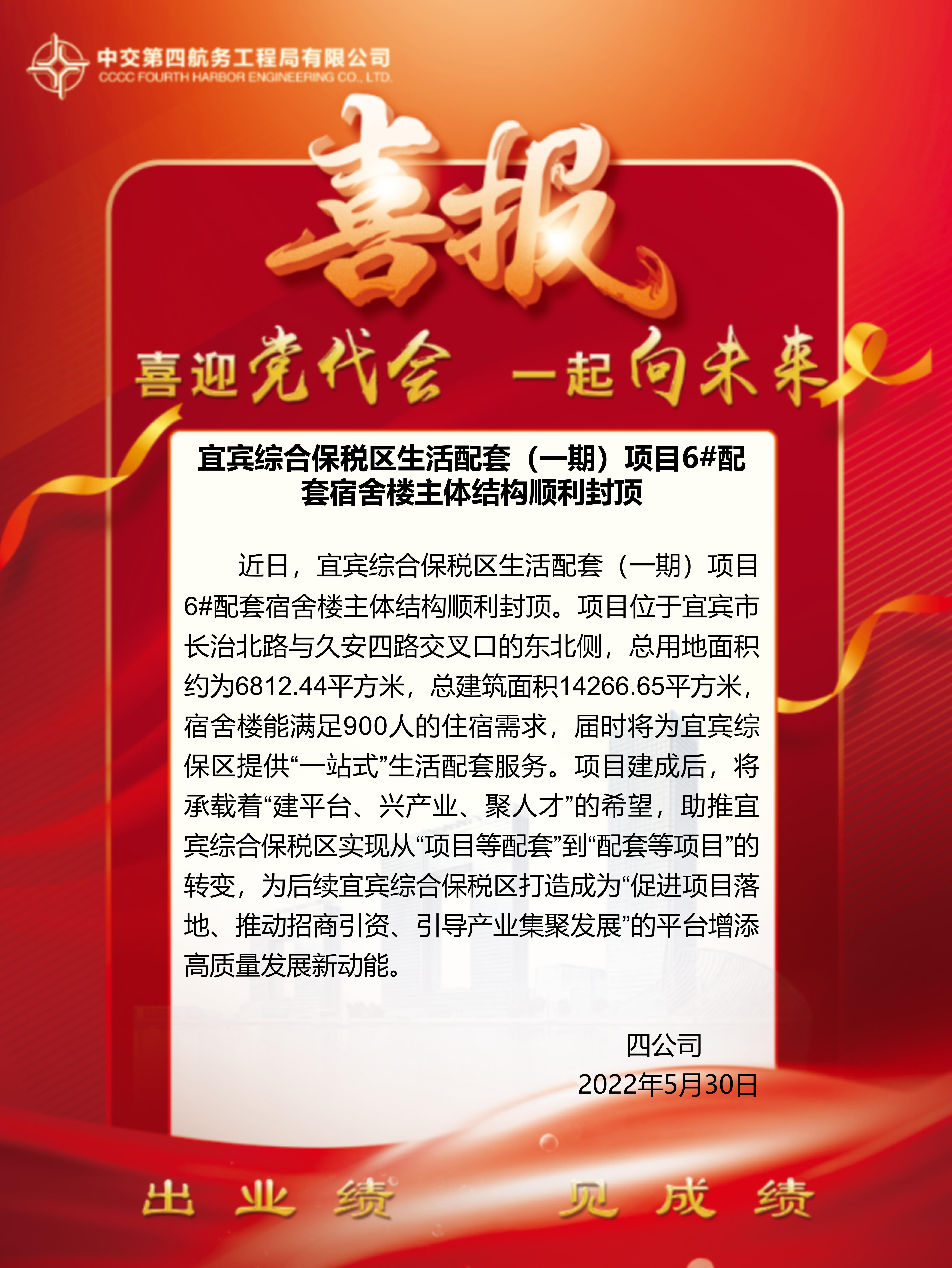 宜賓綜合保稅區(qū)生活配套(一期)項(xiàng)目6#配套宿舍樓主體結(jié)構(gòu)順利封頂