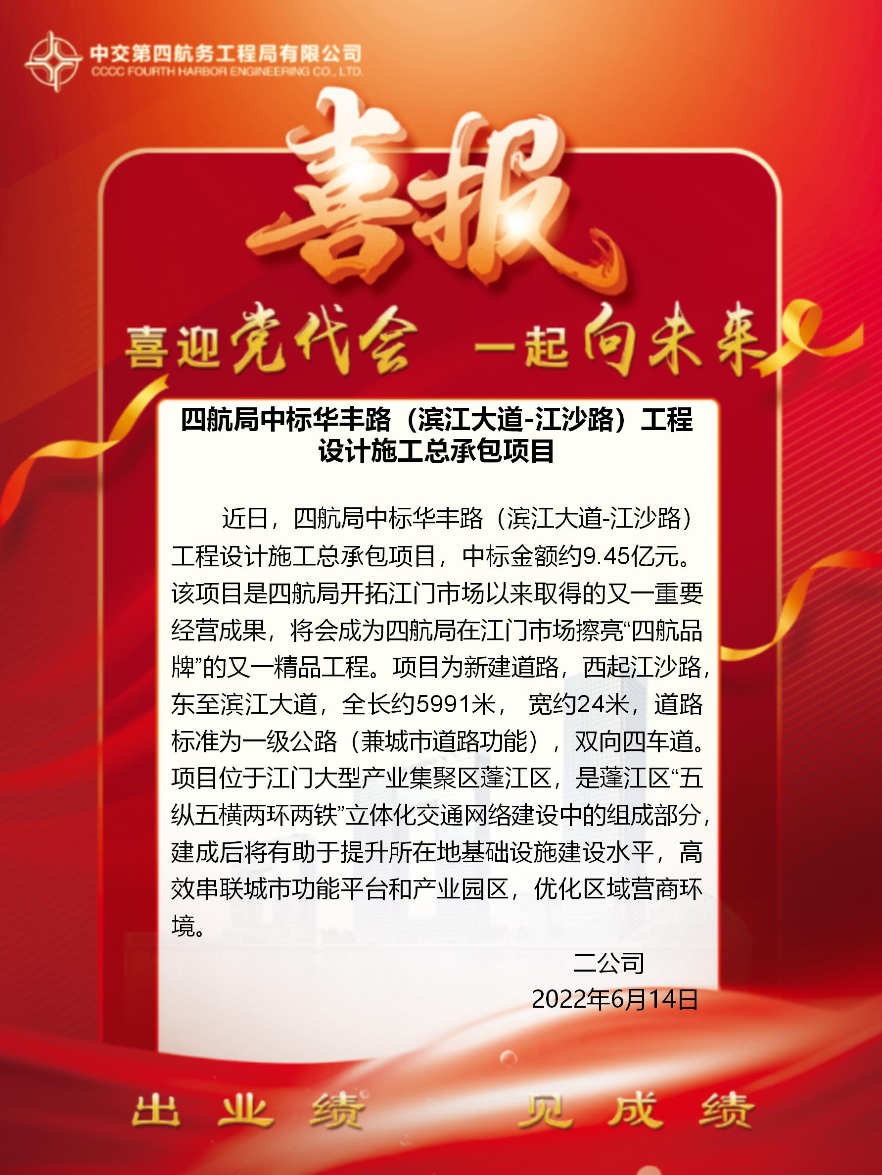 四航局中標華豐路(濱江大道-江沙路)工程設計施工總承包項目