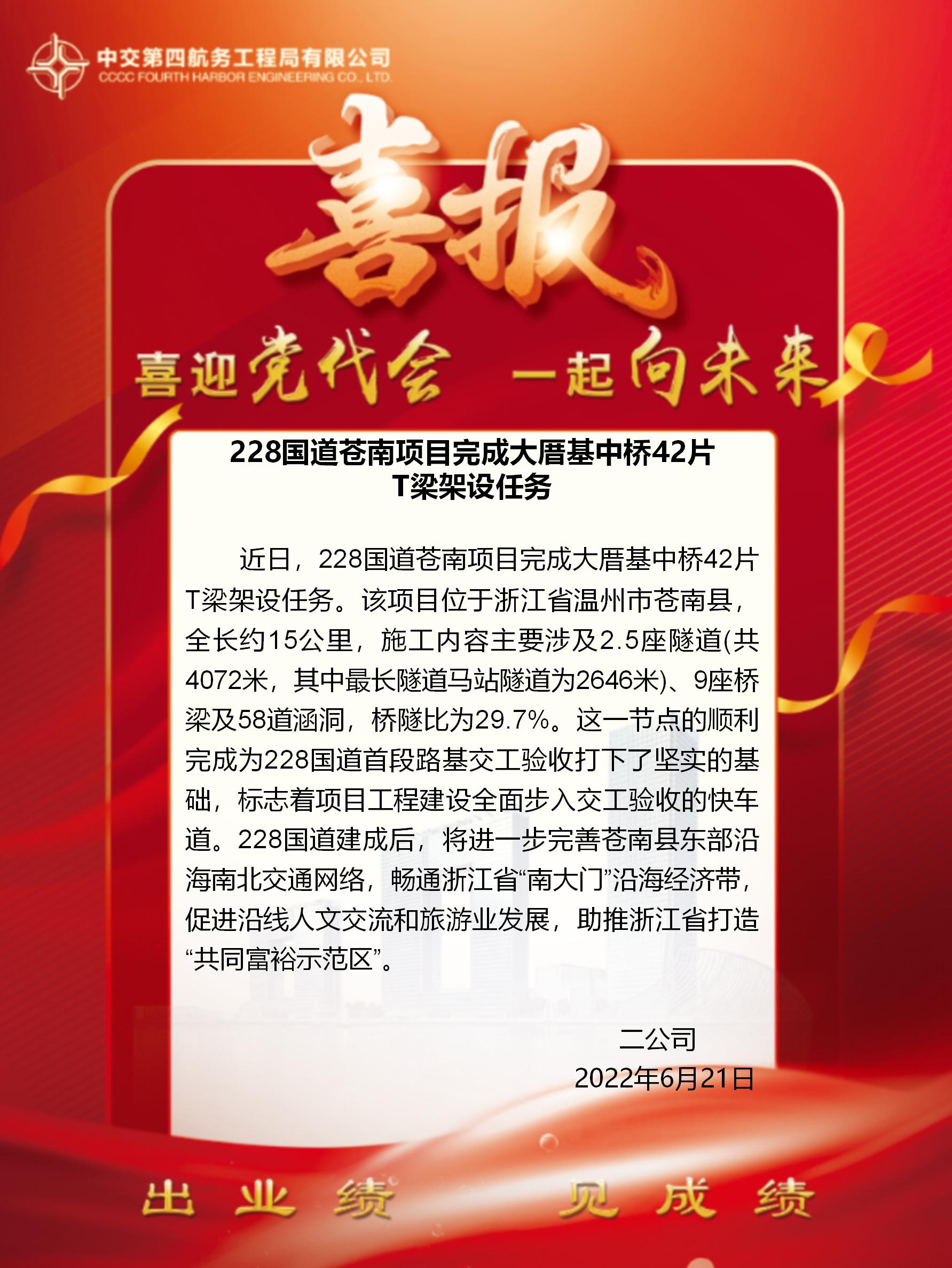228國道蒼南項(xiàng)目完成大厝基中橋42片T梁架設(shè)任務(wù)