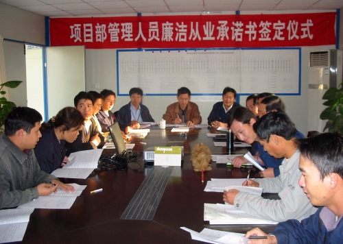 為了加強(qiáng)廉潔建設(shè),規(guī)范工程建設(shè)項(xiàng)目甲、乙雙方的各項(xiàng)活動(dòng),保護(hù)甲、乙雙方的合法權(quán)益,最近,三公司鎮(zhèn)江項(xiàng)目部分別與分包單位、全體管理人員簽定了《工程建設(shè)項(xiàng)目廉潔從業(yè)責(zé)任書》和《企業(yè)管理人員廉潔從業(yè)承諾書》。 (潘壽海 司徒健民)