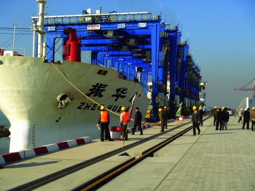 12月22日上午,滿載輪胎式門吊的"振華4號(hào)"輪船成功靠泊由福州分公司承建的廈門嵩嶼港區(qū)1#泊位,標(biāo)志著該泊位建成投產(chǎn)。