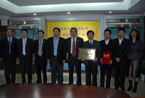 中國銀行廣東省分行授予四航局"AAA級(jí)信用單位"稱號(hào),該行副行長曹立聰率有關(guān)負(fù)責(zé)人于1月15日專程送來匾牌和證書。
