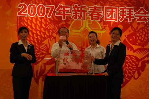 2月14日,公司本部在南園酒家舉行"2007年新春團拜會",大家滿懷喜悅,互致問候,共賀新年。梁卓仁董事長和孫國強總經理向員工拜年、祝酒,對大家在2006年的辛勤工作表示衷心的感謝,祝愿大家在新的一年里有更大的進步。團拜會由公司本部黨委書記張夏明主持。團拜會上表演了員工自導自演的文藝節(jié)目,抽獎活動更是把團拜會的氣氛推向了高潮,整個場面熱烈祥和,體現(xiàn)了四航大家庭的溫馨和諧,大家共祝四航的明天會更好。