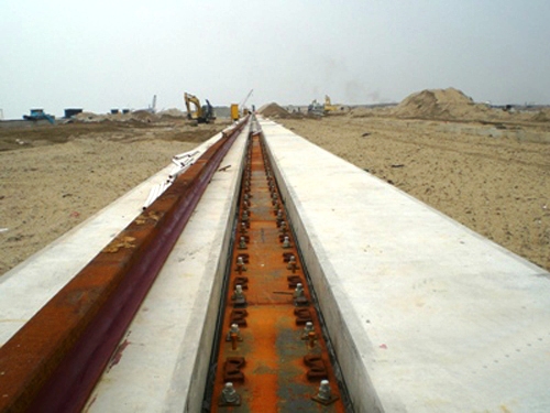 南沙二期9#、10#泊位軌道梁的施工任務(wù)于2007年7月28日順利完成。該工程后軌道梁總長(zhǎng)約694米,共26段,為現(xiàn)澆鋼筋混凝土結(jié)構(gòu)。2007年3月15日正式開工,平均每月澆筑6~7段軌道梁。