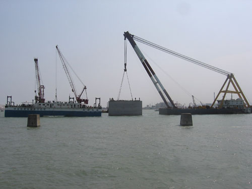 目前項(xiàng)目部各項(xiàng)工作進(jìn)展順利,沉箱預(yù)制已完成35層,完成過半;基床整平累計(jì)完成1512平方米,完成約40﹪;港池挖泥完成57000立方米, 完成約40﹪。