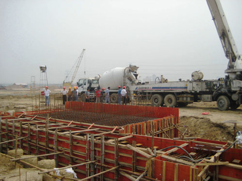 制梁臺座及橫移小車軌道梁的施工,是當前預(yù)制場區(qū)施工的一道關(guān)鍵工序,是按進度計劃開始箱梁預(yù)制的基礎(chǔ)。由于前幾天青島地區(qū)普降近百年一遇的大雨,施工現(xiàn)場積水大約3萬立方,項目部群策群力,在最短的時間內(nèi)將基坑的積水排出去。經(jīng)過緊張有序的前期準備工作,終于在15日開始澆注,并于下午4點澆注完畢,共澆筑完成201立方混凝土。