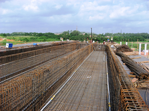 廣明高速公路第二合同段項目部SG1標(biāo)段在業(yè)主單位、設(shè)計單位、監(jiān)理單位及西二環(huán)南段業(yè)主等各方的大力支持下,全體員工齊心協(xié)力、頂烈日、冒酷暑,經(jīng)過五十余天的艱苦奮戰(zhàn),于8月17日6時28分順利完成大崗互通立交跨西二環(huán)南段高速公路全部箱梁的混凝土澆筑任務(wù),比原計劃提前1.5天。