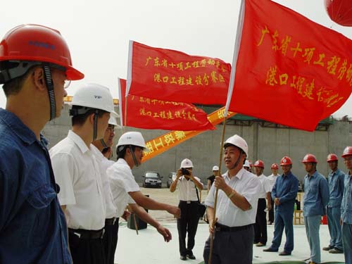四航局深入貫徹廣東省總工會(huì)、廣東省海員工會(huì)《關(guān)于實(shí)施廣東省十項(xiàng)工程勞動(dòng)競(jìng)賽港口建設(shè)工程競(jìng)賽實(shí)施方案》,9月20在中船龍穴島船塢項(xiàng)目部舉行港口工程建設(shè)分賽區(qū)勞動(dòng)競(jìng)賽活動(dòng)啟動(dòng)儀式。廣東省總工會(huì)紀(jì)檢組長(zhǎng)肖建葵、四航局工會(huì)主席肖干生向二公司和研究員的六個(gè)參賽項(xiàng)目的代表授旗。