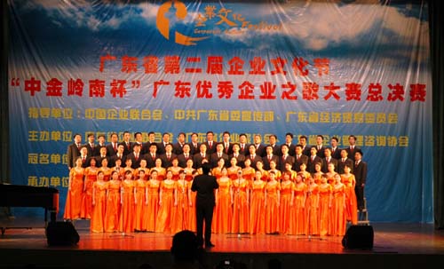 9月28日,由中國(guó)企業(yè)聯(lián)合會(huì)、廣東省委宣傳部指導(dǎo),廣東省企業(yè)聯(lián)合會(huì)主辦的廣東省第二屆企業(yè)文化節(jié)優(yōu)秀企業(yè)之歌總決賽在廣州黃花崗劇院舉行。我公司組織80人合唱團(tuán)演唱的《四航之歌》,喜獲"廣東省十大優(yōu)秀企業(yè)之歌"獎(jiǎng)和大賽唯一最佳作詞獎(jiǎng)。