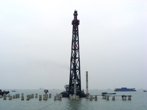 該工程共沉樁799根,樁徑為φ1.2m和φ1.4m兩種類型的預(yù)應(yīng)力砼大管樁,樁數(shù)量分別為401根和398根。施工過程中與基槽挖泥及拋砂交叉作業(yè),施工難度較大。為了確保按時完工,項目部與"樁四"船組建立了和諧、真誠合作的關(guān)系,克服重重困難,按項目部的進度要求順利完成沉樁任務(wù),為按時完工贏得了主動。沉樁工作得到了業(yè)主和監(jiān)理的一致好評。1月15日上午他們親臨現(xiàn)場,觀看了最后一條樁的沉樁全過程。
