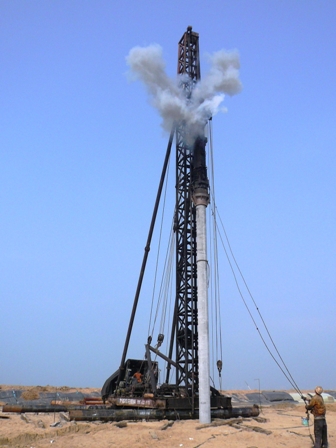 3月23日,海口港二期碼頭工程后方吹填區(qū)后軌道梁PHC樁沉樁正式開始。該工程試樁于3月18日通過檢測單位現(xiàn)場試驗,質(zhì)量得到業(yè)主、設(shè)計、監(jiān)理、質(zhì)檢站的一致認(rèn)同,并決定PHC樁的正式施打以試樁標(biāo)準(zhǔn)進(jìn)行施工。