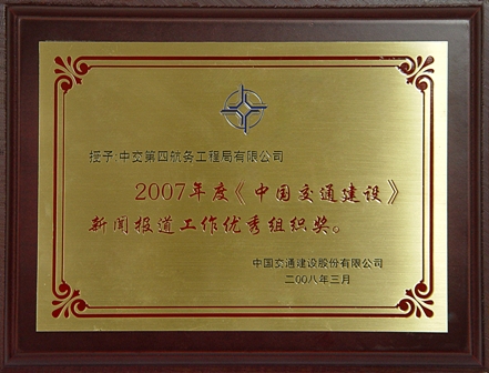 3月17日至18日,中交股份召開了2008年度宣傳報道工作會議,總結中交股份2007年度宣傳報道工作情況,部署2008年宣傳報道重點,同時表彰了一批宣傳報道工作先進單位和個人,四航局被授予"2007年度《中國交通建設》報新聞報道工作優(yōu)秀組織獎",何萬華被授予"2007年度《中國交通建設》報優(yōu)秀記者"稱號。