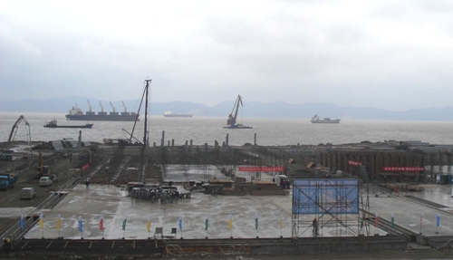 目前,項(xiàng)目部已順利完成60米裝焊平臺(tái)、管溝、軌道等節(jié)點(diǎn)工程。樁基工程已經(jīng)完成PHC管樁沉樁1121根共23000多米;船臺(tái)架空段按原計(jì)劃有條不紊地推進(jìn);在口門(mén)段、直立駁岸段內(nèi)外采用反壓棱體及土體加固的方法以加快工作面的形成和船臺(tái)主體結(jié)構(gòu)的穩(wěn)定,并密鑼緊鼓地組織實(shí)施。