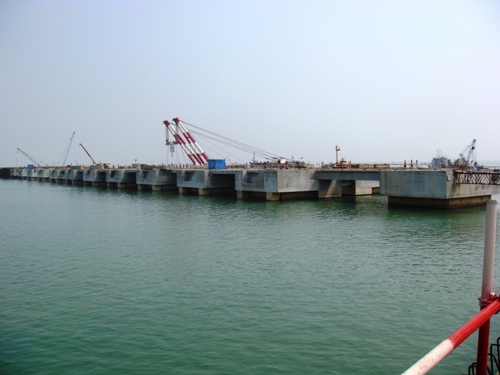 該項目自2007年6月份開工以來,三公司欽州港項目部不斷解放思想,實(shí)施技術(shù)創(chuàng)新,在施工中取得了重大突破。目前36萬立方米的基床拋石、整平以及40件沉箱的安裝已經(jīng)全部完成,胸墻澆注了30段,梁板安裝了300件,累計已完成產(chǎn)值達(dá)2.3億元,有望于今年6月份交付業(yè)主投入使用,比原計劃提前1個月完成。