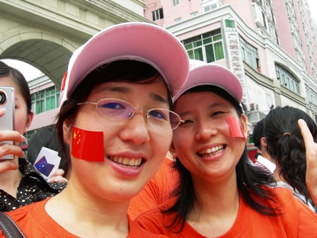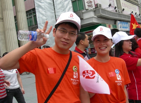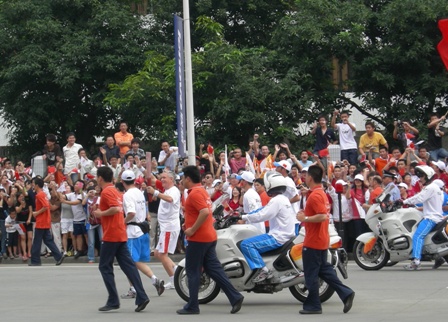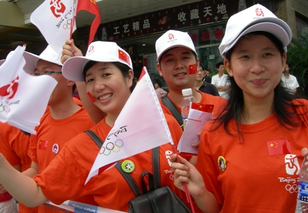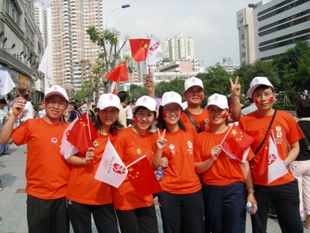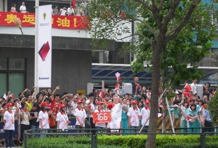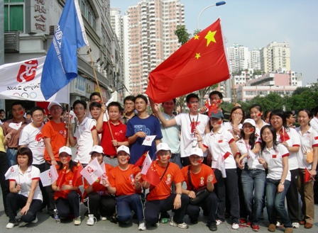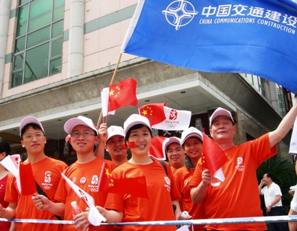四航局員工為廣州站奧運(yùn)圣火傳遞加油助威