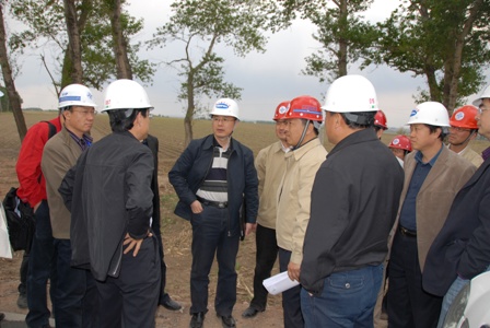 5月13日,鐵道部哈大公司總經(jīng)理杜厚智在中交哈大副指揮長馬新安等一行的陪同下,到四航哈大102國道改線處視察。