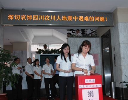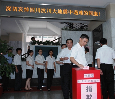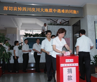 5月19日14時28分起,本部鈴聲長鳴,外面汽車、防空警報鳴響,氣氛異常凝重。全體員工在各自崗位肅立默哀3分鐘,表達(dá)我們作為生者的沉重哀思,祈愿所有不幸遇難者得到安息。隨后,四航局領(lǐng)導(dǎo)和本部員工自發(fā)到辦公大樓一樓大廳再次為災(zāi)區(qū)人民捐款。當(dāng)天,共捐了39622元。