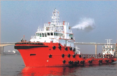 該船為航通公司今年交付使用的第三艘船舶。該船長58.7米、寬14.6米、設(shè)計吃水4.5米、總噸數(shù)1523噸、系柱拖力65噸,主要用于海上石油平臺的拖帶、消防、供應(yīng)和住宿,該船入級美國船級社(ABS),為無限航區(qū),外消防系統(tǒng)的拋錨供應(yīng)船。