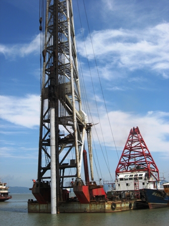 7月15日,三公司舟山中遠(yuǎn)船務(wù)八號碼頭引橋樁基工程響錘,中海樁8船打下了該工程第一根長47米、Φ1000mm的PHC樁,標(biāo)志著八號碼頭施工正式拉開帷幕。