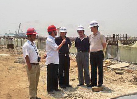 在施工現(xiàn)場,孫國強(qiáng)認(rèn)真聽取了海滄項(xiàng)目施工生產(chǎn)情況匯報(bào),并詳細(xì)了解施工中遇到的實(shí)際困難,對施工質(zhì)量及進(jìn)度給予了肯定。他鼓勵員工發(fā)揚(yáng)四航人善打硬仗的精神,在確保安全、質(zhì)量的情況下爭取提前交工。