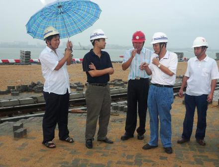 8月9日至10日,由海南省質(zhì)監(jiān)站副站長(zhǎng)陳穎新帶領(lǐng)的水運(yùn)工程檢查組到三公司海口馬村港和??诟鄱诖a頭工地開展質(zhì)量安全檢查。