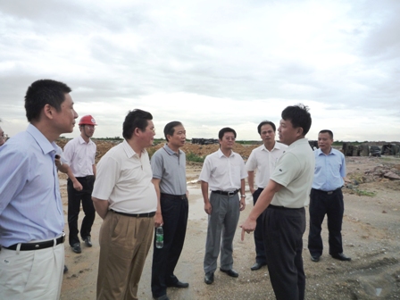 8月7日上午,中山市副市長馮煜榮,中山市委常委、中山火炬開發(fā)區(qū)書記馮梳勝,業(yè)主廣新外貿(mào)集團(tuán)董事長歐廣一行到研究院中山軟基處理工程施工現(xiàn)場視察。