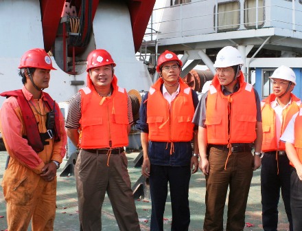 當(dāng)天,董事長梁卓仁在二公司總經(jīng)理李惠明等領(lǐng)導(dǎo)陪同下來到施工現(xiàn)場向項目部表示祝賀。梁董事長參觀了剛剛安裝完畢的箱梁,仔細詢問了安裝過程。他指出,要嚴格按照計劃工期開展施工,確保工程質(zhì)量,克服現(xiàn)有不利因素的影響建好海灣大橋,打出四航局在北方市場的知名度;同時也要處理好與業(yè)主、監(jiān)理、兄弟單位及地方行政單位的關(guān)系,做好服務(wù)工作,在各施工單位競賽中互相學(xué)習(xí),和諧相處,爭當(dāng)一流。