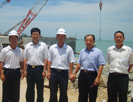 在碼頭施工現(xiàn)場,李總一行認真聽取了碼頭施工進度、安全質量管理等情況的匯報,對該碼頭的施工成績給予充分肯定,并勉勵項目部再接再厲,繼續(xù)加強施工管理。