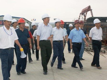 9月5日,上海市副秘書長尹弘在上海市建委孫主任、市規(guī)劃設(shè)計院等有關(guān)職能部門領(lǐng)導(dǎo)、京滬高鐵指揮部拉有玉指揮長等陪同下到四航局京滬高鐵嘉定制梁場檢查指導(dǎo)工作。