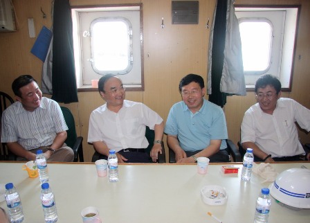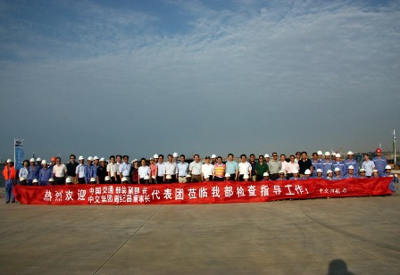 翁副部長,周董事長一行登上"粵工拖37"號拖輪,分別視察了GRN集裝箱碼頭、Sonils主碼頭、Sonan;l油碼頭等完工工程,以及預制廠、船塢、主碼頭延長段等在建工程,并在海上檢閱了該項目部所有施工船舶。領導們都對該項目部所取得的成績表示認可,同時也對項目部為祖國,為中交集團做出的貢獻表示感謝。
