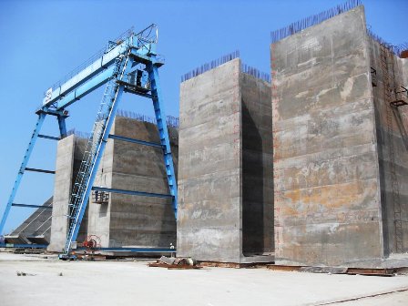 重件船塢工程共有沉箱6件,每件重達580噸,是羅安達項目部成立以來預(yù)制的最大構(gòu)件。沉箱預(yù)制采用外模一次到頂,內(nèi)膽分層立模、混凝土分層澆注的施工方法,澆注歷時50個小時。目前,船塢工程進展順利,項目部人員正全力以赴,爭取明年6月底全面交工。