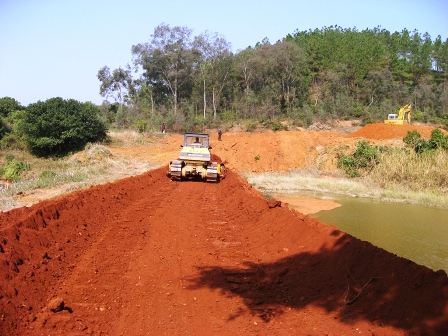 三水制梁場(chǎng)所處地多面環(huán)山,不利機(jī)械設(shè)備進(jìn)場(chǎng)。便道施工前,貴廣鐵路二項(xiàng)目部征遷辦通過(guò)努力,于1月12日在三水區(qū)西南洲邊村征用了20畝多土地作為梁場(chǎng)先期拌和站使用場(chǎng)地,并與當(dāng)?shù)卮逦瘏f(xié)商,同意修通一條約1公里的施工便道。在便道施工過(guò)程中,二項(xiàng)目部技術(shù)人員克服了便道起伏不平、魚塘阻隔、樹(shù)林茂密等困難。