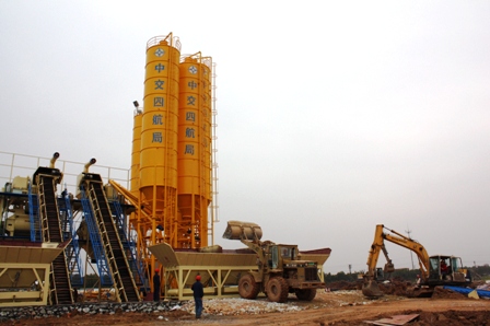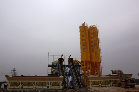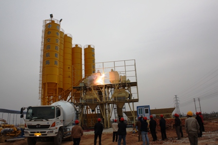 1月23日下午二時整,隨著一陣響亮的鞭炮聲,貴廣鐵路工程二項目部線路攪拌站第一臺攪拌機組投入使用,二公司總工程師王定武親臨施工現(xiàn)場指導。